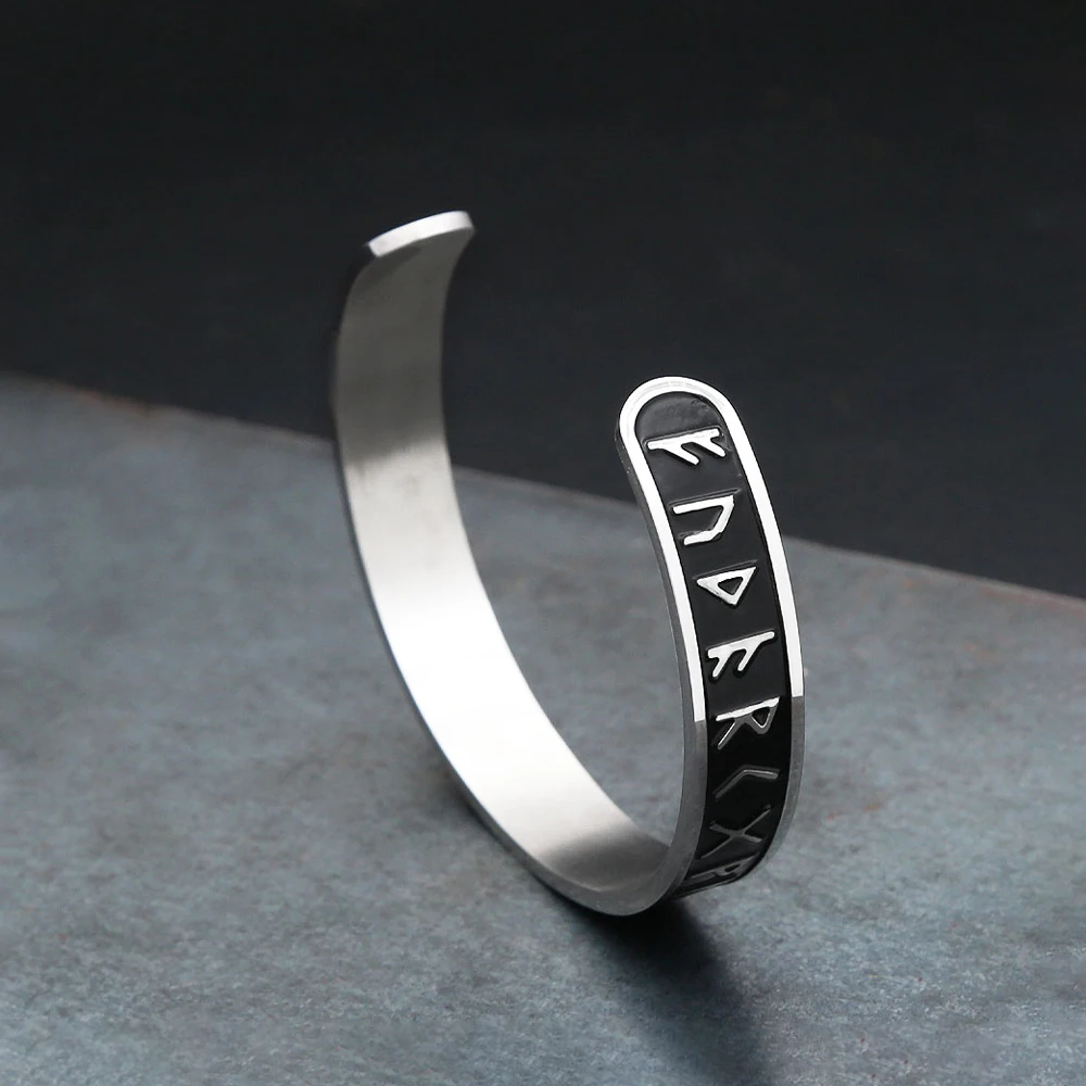 Nordic Stainless Steel Vikings Rune Bracelet Fashion Opening Simple Cuff Bangles For Men Women Amulet Jewelry Gifts