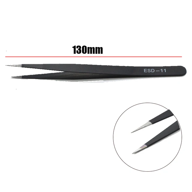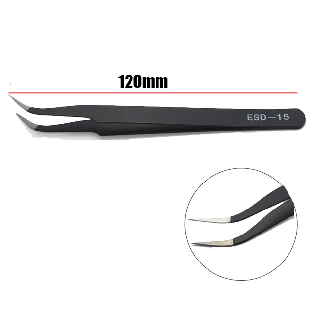 1. This set of stainless steel tweezers includes both curved and straight tweezers, perfect for precision picking and repair tasks. The ESD anti-static design makes them ideal for handling delicate electronic components without causing damage.